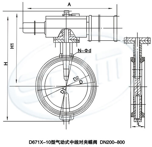 D671X-10型氣動式中線對夾蝶閥用氣動裝置通過機械執行機構驅動蝶板完成閥門的啟閉。本閥蝶板的工作位置可通過行程開關進行信號顯示。本閥可以單臺遠距離控制,也可以集中遠距離控制,還可以將電信號輸入計算機進行程序控制。非正常情況下可以手動操作。本閥可以任意位置安裝,無方向性。