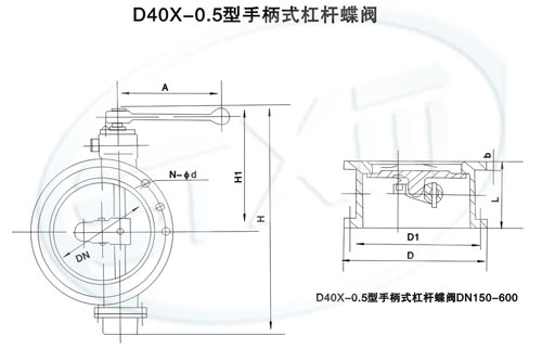 D40X-0.5型手柄式杠桿蝶閥主要由閥體、蝶板、杠桿、閥桿、手柄等零件組成。用手柄轉動蝶板實現啟閉。本閥適用于現場操作的場合。本閥安裝時請注意介質流向應符合閥體上箭頭的指向。