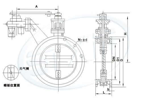 ZAJW-6型自動調(diào)節(jié)蝶閥由DKJ型角行程電動執(zhí)行器和斜板式調(diào)節(jié)蝶閥組成。角行程電動執(zhí)行器安裝在蝶閥一側(cè),用連桿帶動蝶板實現(xiàn)調(diào)節(jié)、控制。本閥可以用儀表自動控制,也可以用電動操作器遠控,還可在現(xiàn)場用電動執(zhí)行器上的手輪進行手動操作。本閥安裝時請參照圖示確定安裝方向。防止塵灰堆積增加閥門開啟阻力。