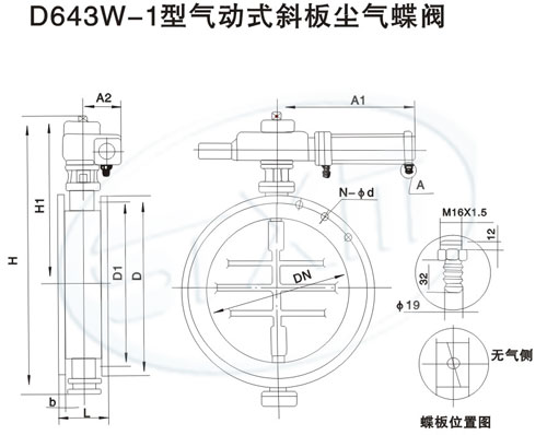 D643W-1型氣動式塵氣蝶閥利用氣動裝置通過機械執行機構驅動蝶報實現啟閉。蝶板工作位置可通過行程開關進行信號顯示。閥門啟閉速度可用節流閥調節。本閥可以單臺遠距離控制,也可以遠距離集中控制,還可以將信號輸入電子計算機進行程序控制。本閥在非正常情況下,也可用扳手進行手動操作。本閥安裝于水平管道時請參照圖中所示確定安裝方向。以防止塵灰堆積增加閥門開啟阻力。