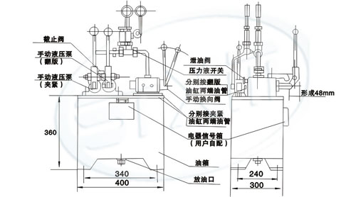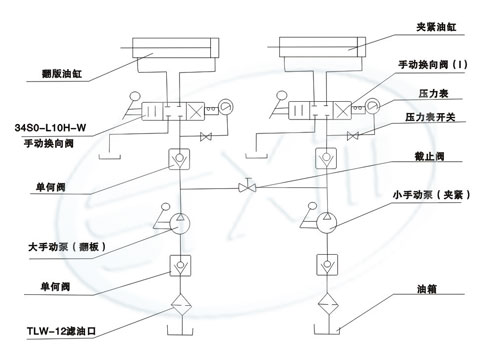 本廠生產的YYZ·S-10型手動液壓站是與液動式扇形盲板閥配套使用的專用設備。由大手動泵、小手動泵和手動換向閥組成。大手動泵用來驅動翻轉油缸,小手動泵用來驅動夾緊油缸。通過手動換向閥實現動作轉換。利用閥體上設置的行程開關1XK、2XK、3XK、4XK和指示燈顯示各步動作到位情況。詳細步驟和操作方法見說明書。