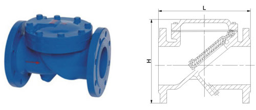 該閥主要用于給排水系統、石油、化工等工業部門的管道泵出口處,防止介質逆流。由于本產品的密封圈采用傾斜設計,關閉時間短,可減少水錘壓力。閥瓣采用丁腈橡膠與鋼板經高溫壓制而成,耐沖刷,密封性能好,產品結構簡單、保養、維修、運輸均很方便。